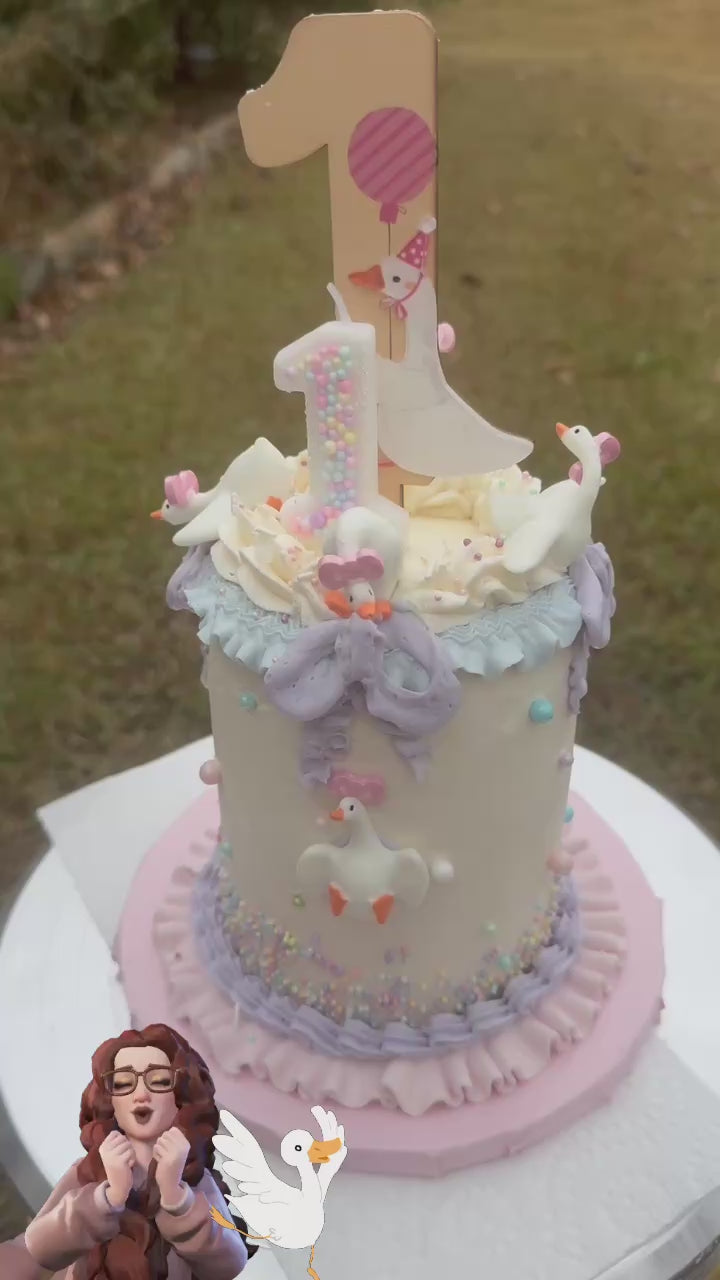 Any custom smash cake 4-inch not requiring hand-painting. Any flavor and buttercream or fondant included. This is a cake meant to be destroyed by your child(ren) on their first birthday tearing into it at their heart’s content. It’s not a size of cake intended to be sliced and served to party guests. I offer this cake at a discounted price for your child’s (and hopefully my future client) birthday.