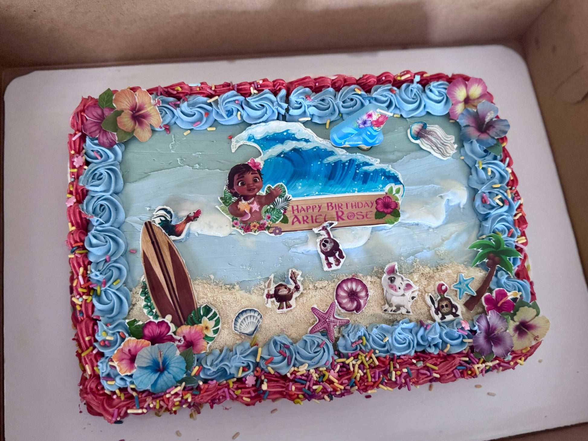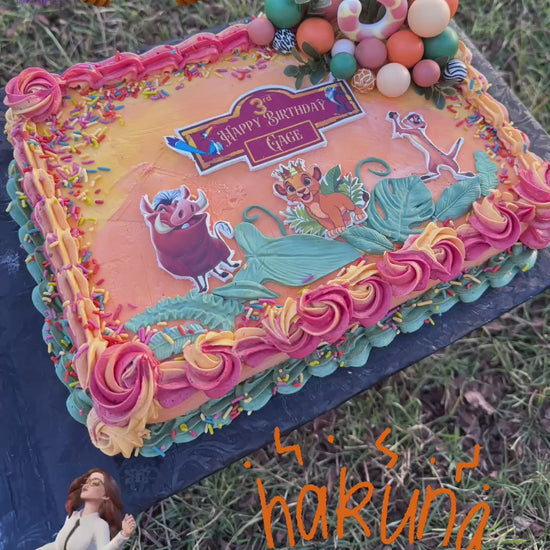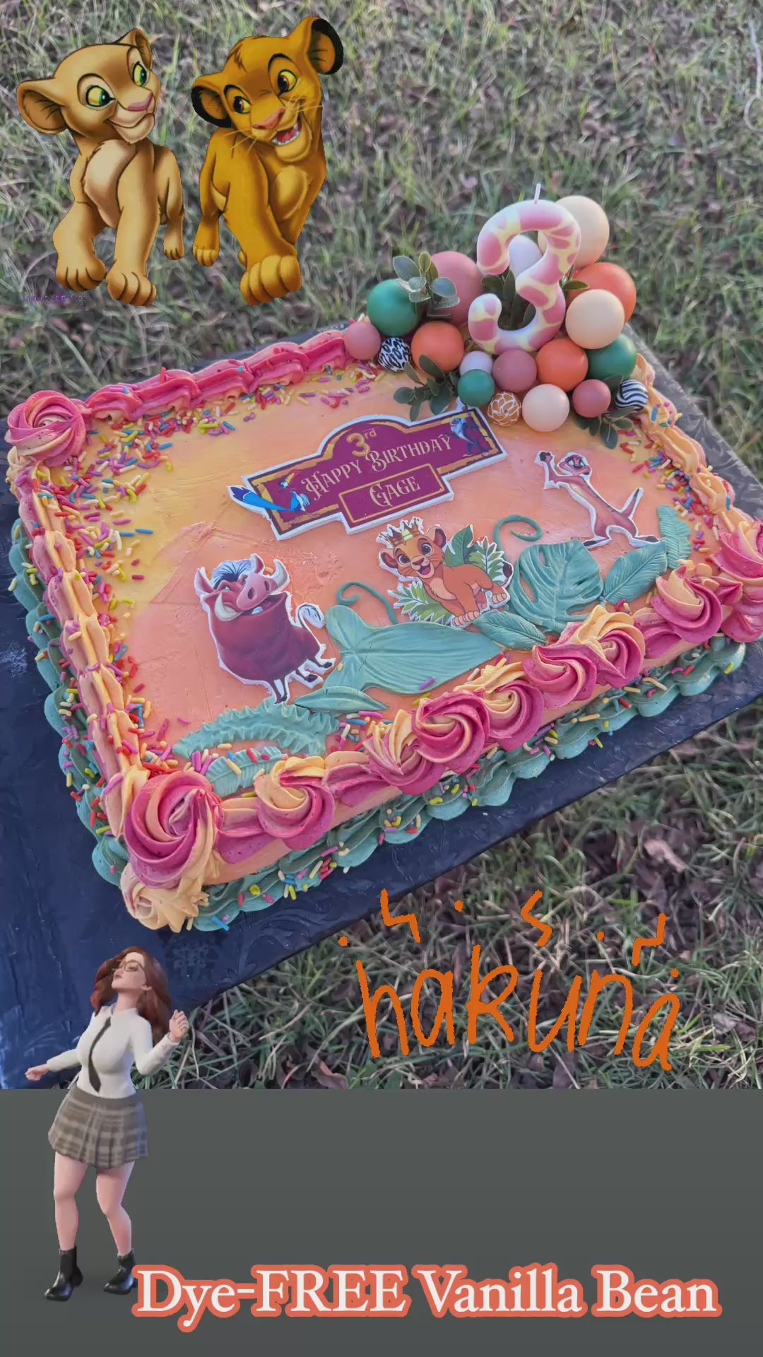 Half (13-inches by 18-inches) Decorated Cake. Can include buttercream and an edible image. Fondant and modeling chocolate elements would be an upcharge. Please allow 1-2 weeks minimum notice before day of event.