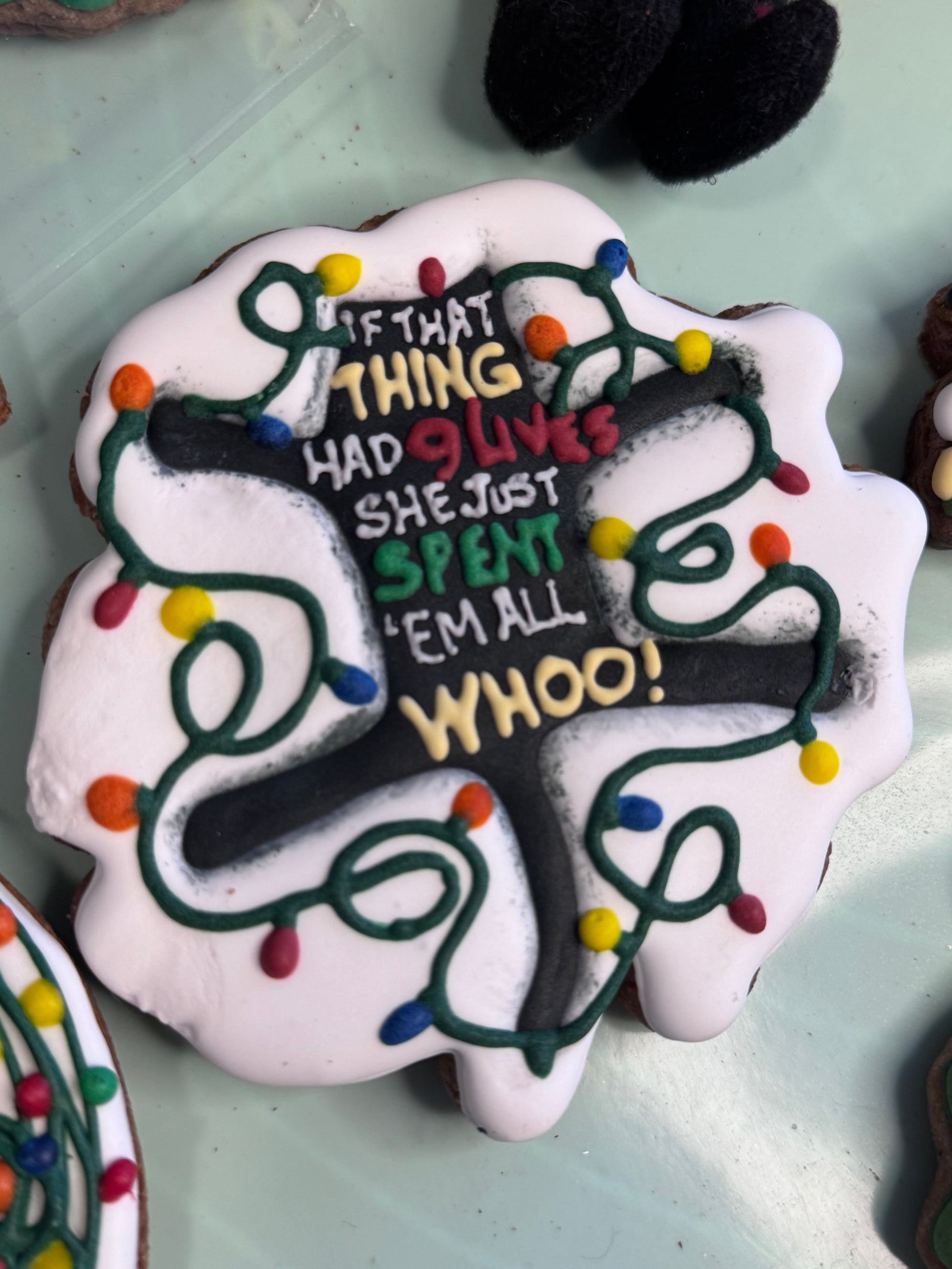 This is a pre-order listing for Tier II Christmas cookies which include intricate details and handpainting that require hours upon hours of work to create.