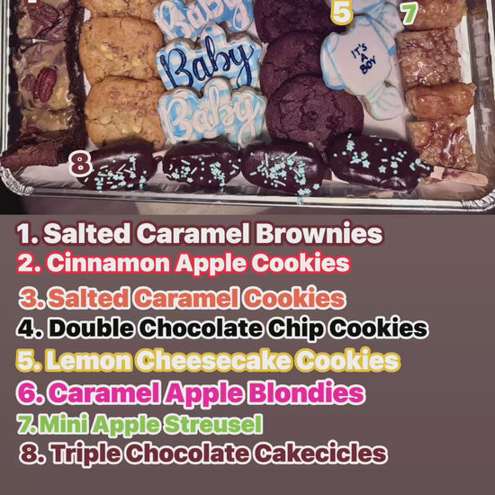 This listing is for a platter of 25 assorted gourmet desserts including all made from scratch using our farm’s duck eggs: Triple Chocolate Brownies; Strawberry Cheesecake Blondies; Chocolate Chip Cookies; Chocolate Dipped Pretzels & Oreos; Peanut Butter Cookies and more.